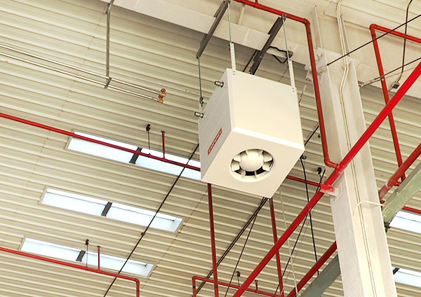 康平新型高大空间空气处理机采取建筑空间顶部进风,吸收上部空间热空气,提高进风温度,通过盘管二次加热后,垂直送入作业空间,出风扩散面积随意可调,减少室内温差梯度,解决传统高大空间建筑上下空气温度不均、能源损耗大的弊端。可根据需求恒温控制室内温度和开启关闭时间,节省热量消耗。