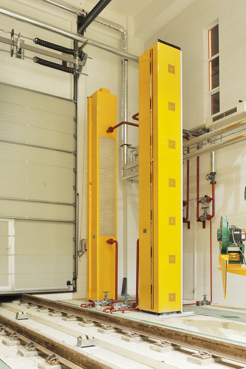 项目简介:北京西客站动车清洗站,选用康平蒸汽型大门侧吹热风幕,进站口选用康平顶吹热水型、电热型热风幕。