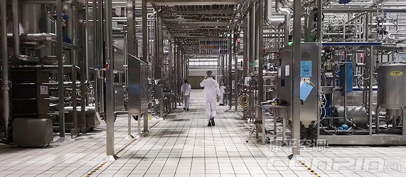 云南伊利乳业生产线设备品质升级,康平空调康平地面安全保护角应用云南伊利工厂,质感夺目的拉丝不锈钢效果,与车间设备浑然一体,具有典型的金属时尚感,使整个车间有着工业美。