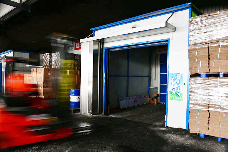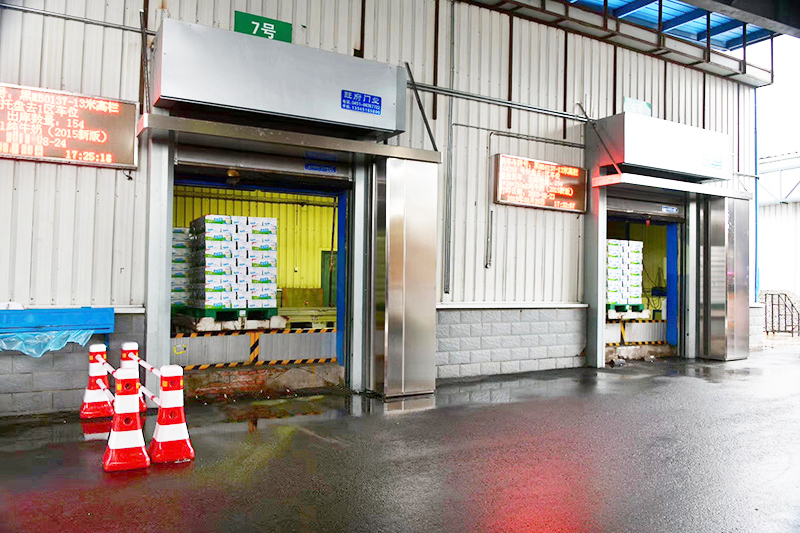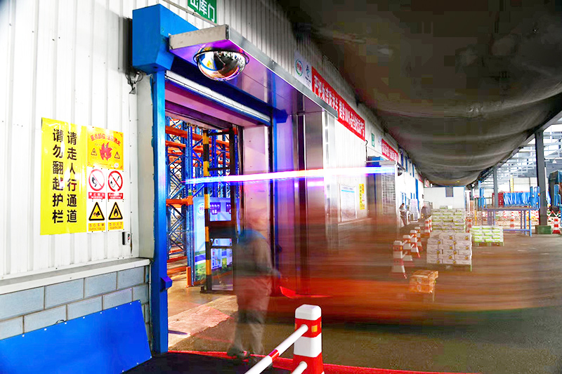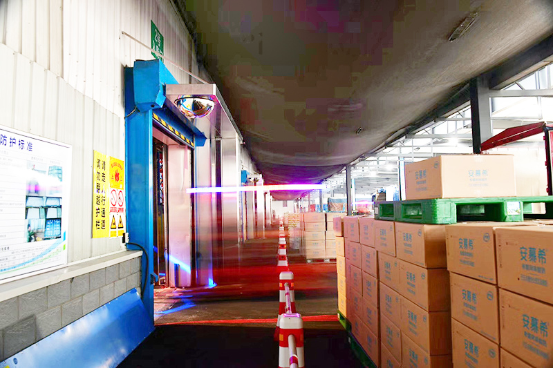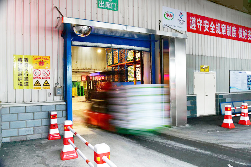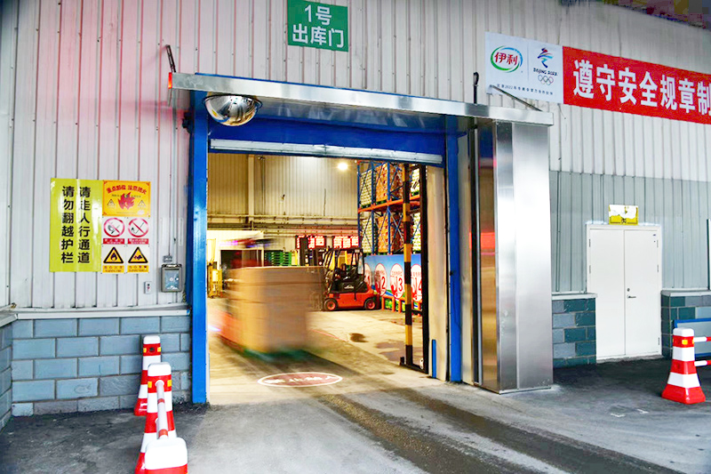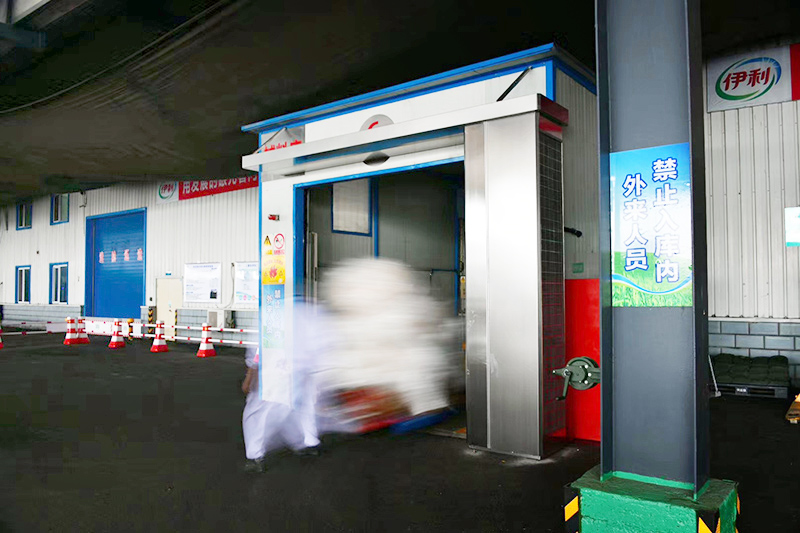 康平食品级高速空气幕运行肇东伊利工厂储运库,整机不锈钢340拉丝制造工艺,新增360°安全视镜,空气隔离、安全运输双保障!