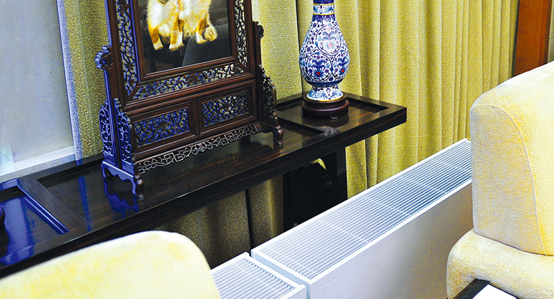 CPMD明装强制对流散热器采用铜管铝片换热器,低噪声调速风机,十万小时免维护,具有体积小、热量高、恒温自动控制、高效节能、升温快速。具有设计风格精美简洁,温度控制方便,散热性能稳定,使用寿命长等优点。适合大型会所、会议室、大厅等大型建筑空间使用。