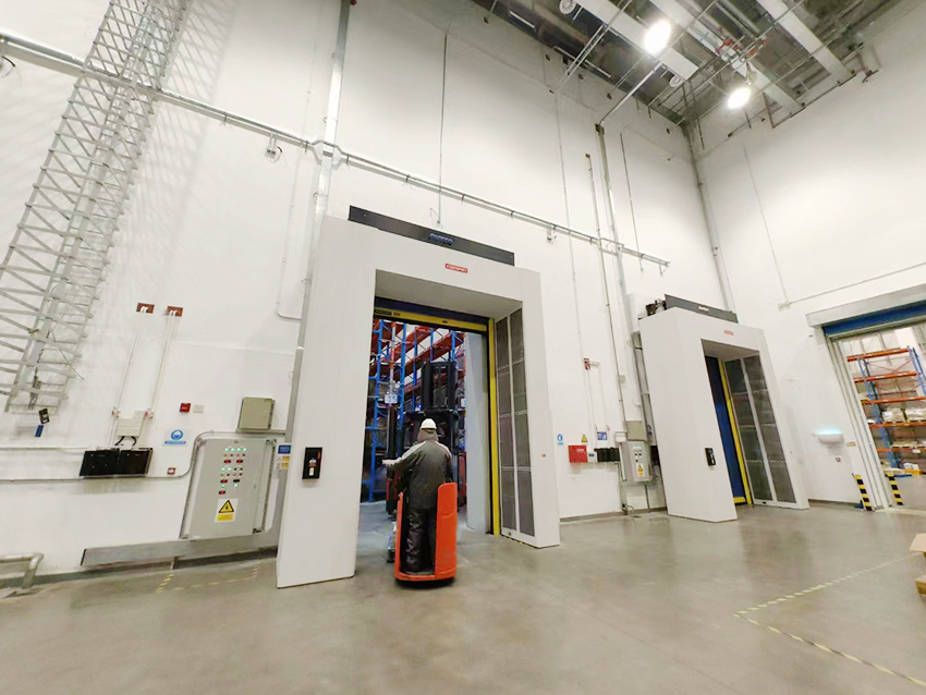 5米高,负24度低温冷库物流出入口,夏季经常雾满为患,地面结冰,甲方期盼行业中找到可靠解决方案……